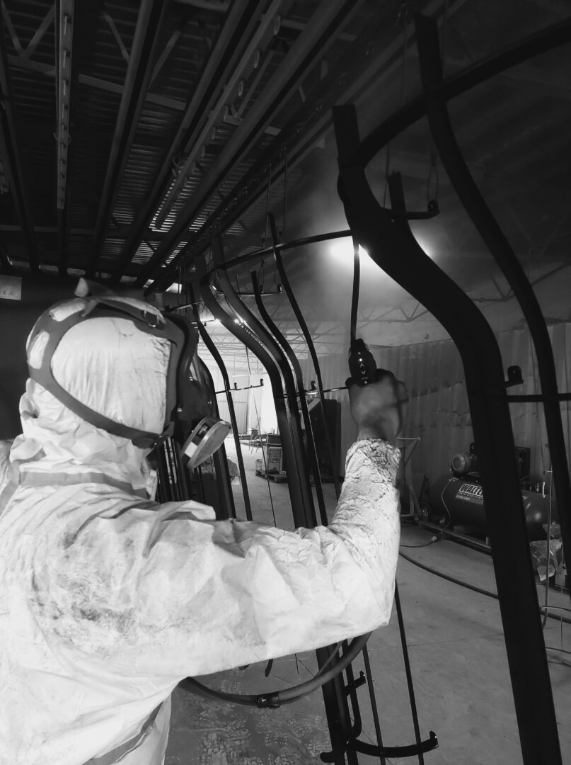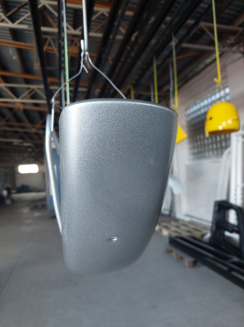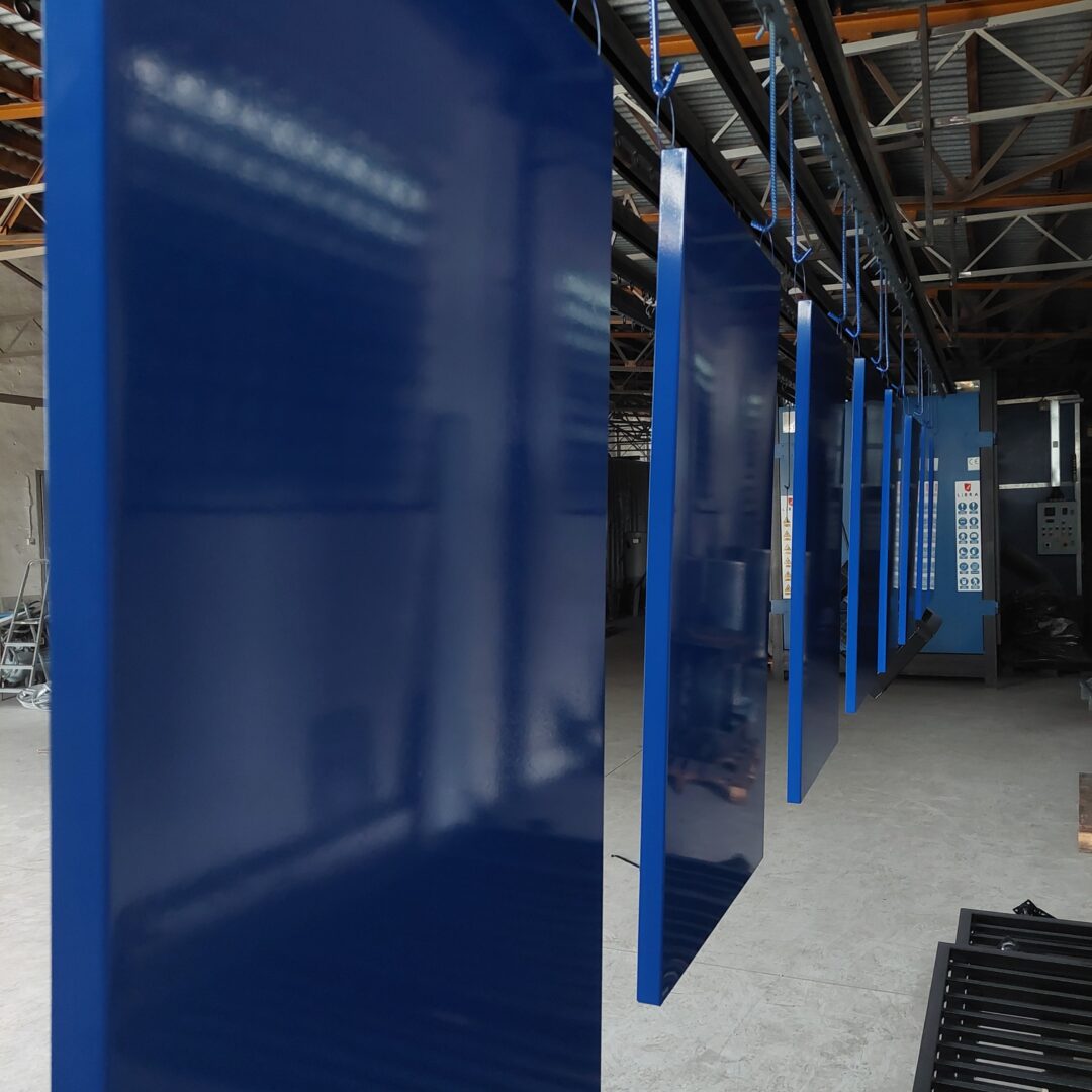 To jedna z najtrwalszych i najefektywniejszych metod pokrywania metali. Farba w postaci proszku nakładana jest na powierzchnię dzięki natryskowi elektrostatycznemu czy elektrokinetycznemu. W wyniku elektryzacji cząsteczki farby (20 – 100µ) ściśle przylegają do malowanej powierzchni. Po nałożeniu proszku, dany element przechodzi obróbkę termiczną w specjalnym piecu rozgrzanym do 180-200°C. Po upływie ok. 20min. Powłoka ulega stopnieniu i polimeryzacji (utwardzeniu), dając tym samym pożądany efekt oraz znakomite właściwości użytkowe: odporność na chemikalia, kredowanie, korozję, uszkodzenia mechaniczne oraz wysoką temperaturę.