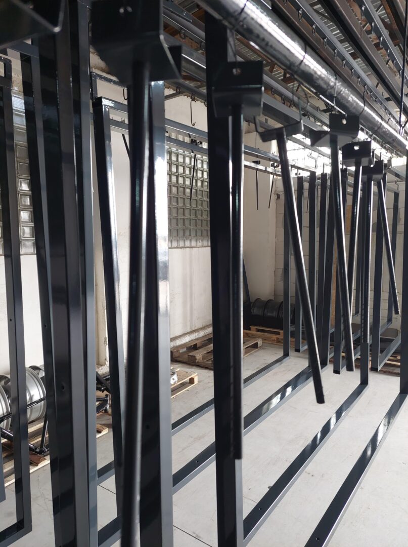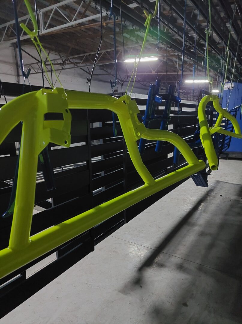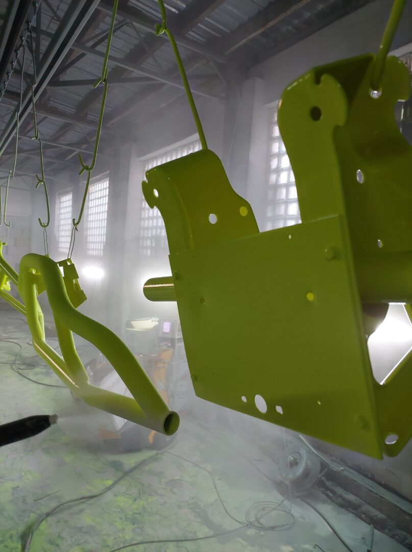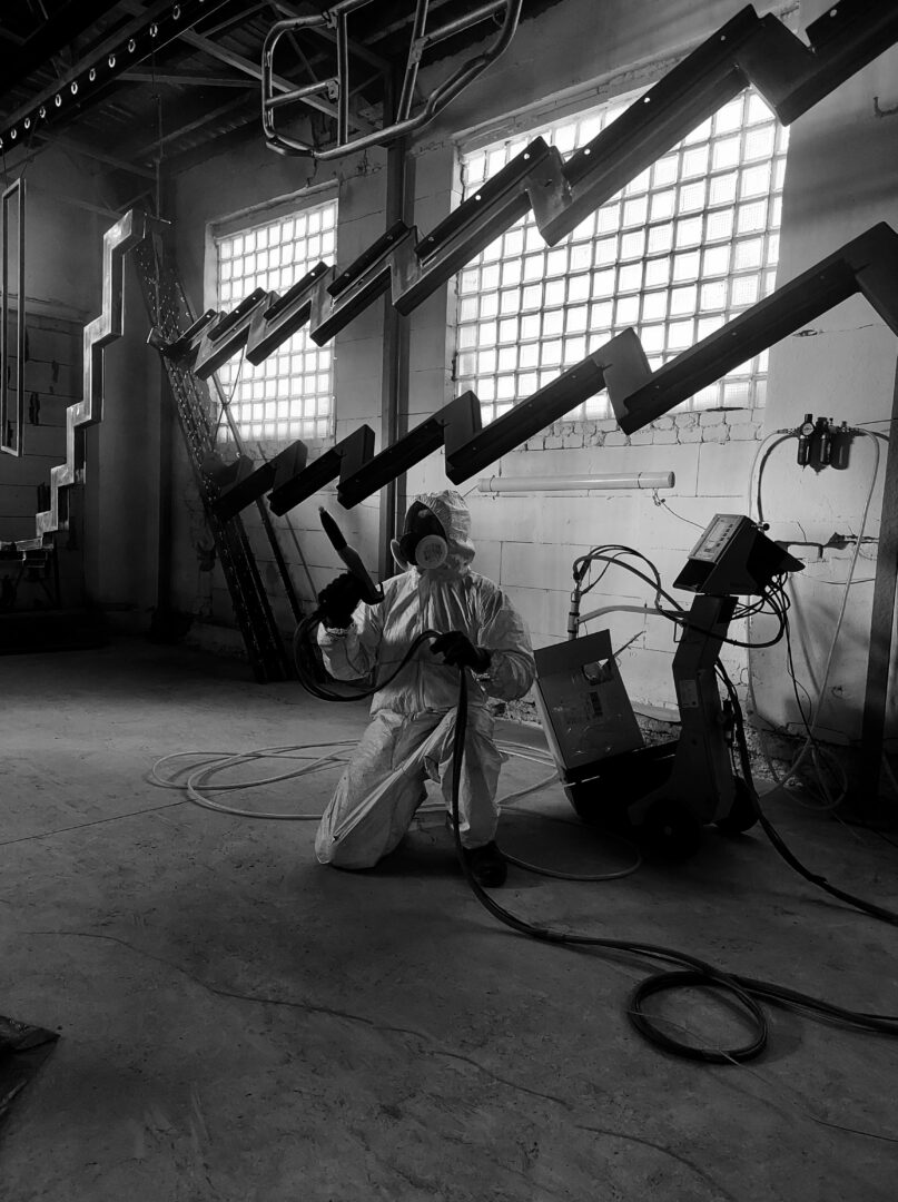 To jedna z najtrwalszych i najefektywniejszych metod pokrywania metali. Farba w postaci proszku nakładana jest na powierzchnię dzięki natryskowi elektrostatycznemu czy elektrokinetycznemu. W wyniku elektryzacji cząsteczki farby (20 – 100µ) ściśle przylegają do malowanej powierzchni. Po nałożeniu proszku, dany element przechodzi obróbkę termiczną w specjalnym piecu rozgrzanym do 180-200°C. Po upływie ok. 20min. Powłoka ulega stopnieniu i polimeryzacji (utwardzeniu), dając tym samym pożądany efekt oraz znakomite właściwości użytkowe: odporność na chemikalia, kredowanie, korozję, uszkodzenia mechaniczne oraz wysoką temperaturę.
